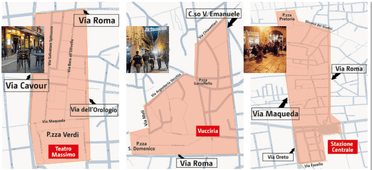 I controlli si concentreranno nei luoghi simbolo della movida: piazza Verdi, via Maqueda (da via Cavour a via dell’Orologio), piazza Olivella, via Roma, corso Vittorio Emanuele, piazza San Domenico, via Meli, vicolo Sant’Eligio, via Argenteria Vecchia, via Materassai, piazza Garraffello, via Cassari e via Chiavettieri.