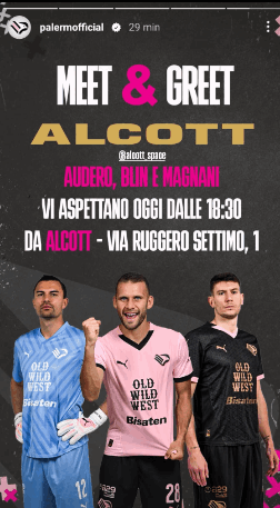 Il Palermo ha annunciato attraverso le proprie storie Instagram che saranno Emil Audero, Alexis Blin e Giangiacomo Magnani i protagonisti del Meet & Greet con i tifosi rosanero. L’evento si terrà oggi pomeriggio a partire dalle 18:30 presso Alcott, in via Ruggero Settimo 1.