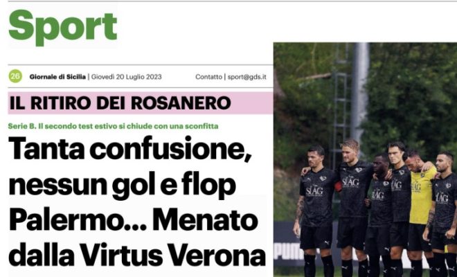 L’edizione odierna de “Il Giornale di Sicilia” si sofferma sulla sconfitta del Palermo contro la Virtus Verona.