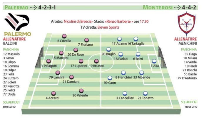 L’edizione odierna de “Il Giornale di Sicilia” ha stilato le probabili formazioni del match in programma oggi tra Palermo e Monterosi.