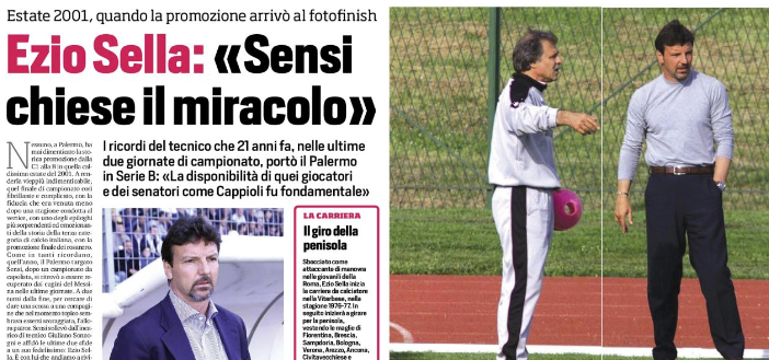 L’edizione odierna de “Il Corriere dello Sport” riporta un’intervista all’ex rosanero Ezio Sella il quale si è espresso anche sulla gara di questa sera, ma non solo, anche su Sensi.