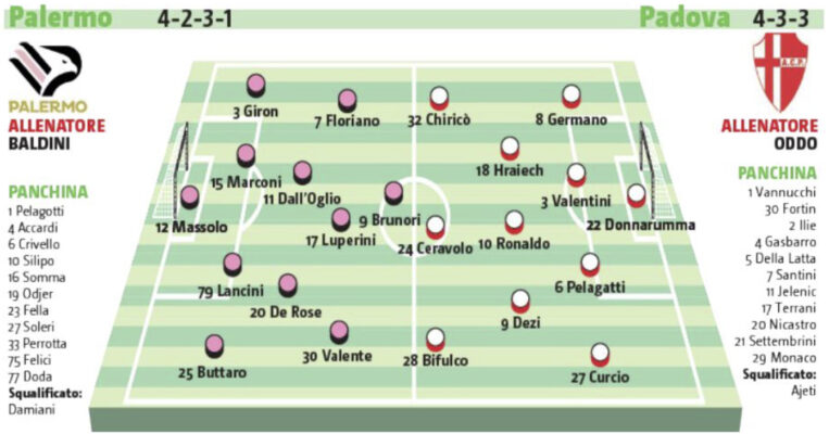 L’edizione odierna de “Il Giornale di Sicilia” ha stilato le probabili formazioni del match di questa sera tra Palermo e Padova.
