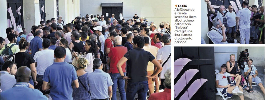 L’entusiasmo di molti tifosi si è tramutato in nervosismo e i tagliandi non risultavano disponibili dopo appena due ore. Diversi sono finiti nelle mani dei bagarini. La prima giornata di vendita libera, con sold-out annunciato, ha visto un vero e proprio assalto e il più nutrito gruppo di tifosi si è riversato nella biglietteria del “Barbera”. A pochi minuti dalle 13, orario d’inizio, la lista di attesa dello stadio ha già superato 800 persone per poi aumentare ulteriormente. In tutti gli altri rivenditori, i nomi sono centinaia.