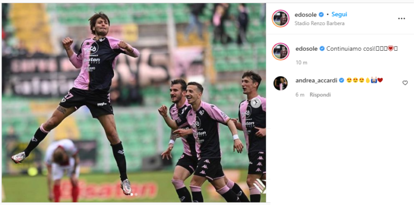 Palermo-Picerno, Soleri esulta sui social: “Continuiamo così!” (FOTO)