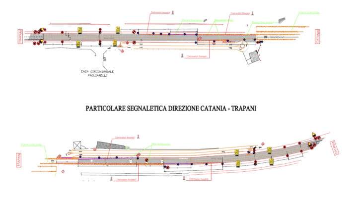 – Limitazione della larghezza delle corsie ad un totale di 6,5 m dovrà essere fisicamente realizzata lungo, impedendo l’ingresso di automezzi nelle zone laterali alle due corsie e dovrà essere guidata da dispositivi di ritegno opportunamente disposti.;
