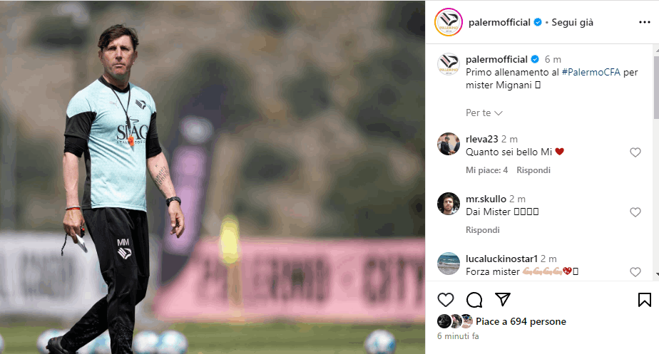 Primo allenamento al Palermo City Football Academy per mister Michele Mignani.