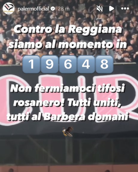Attraverso le proprie Instagram stories, il Palermo comunica che domani saranno presenti almeno 19.648 spettatori:
