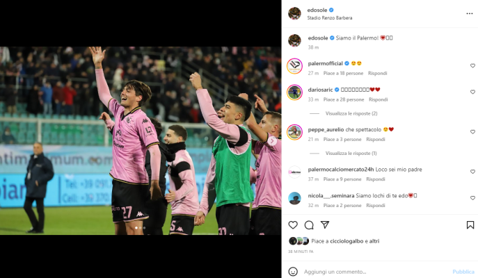 Palermo-Reggina, Soleri esulta sui social: “Siamo il Palermo!” (FOTO)