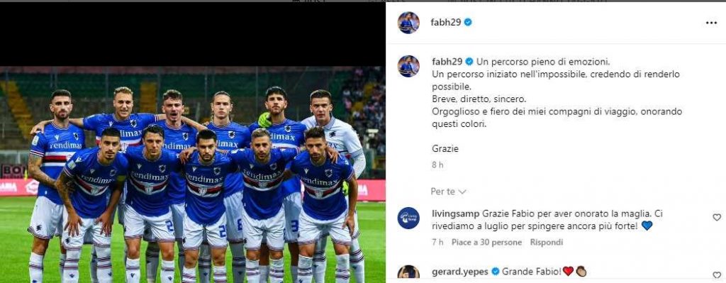 Anche Borini torna sulla sfida tra Palermo e Sampdoria. Per il match del Barbera, terminato 2-0, con il passaggio del turno guadagnato dai rosanero, anche il capitano dei blucerchiati sui social esprime la propria amarezza e delusione circa la sconfitta rimediata. Di seguito il post e le sue parole: