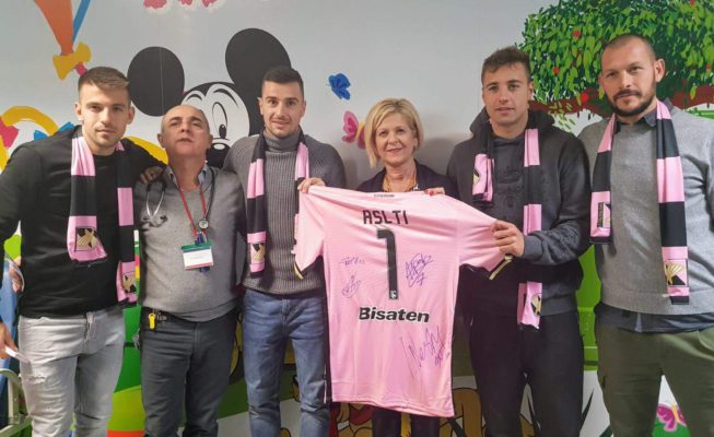 Oggi pomeriggio una delegazione rosanero composta da Nestorovski, Trajkovski, Cionek e Pomini ha fatto visita, in rappresentanza di tutto il club, ai piccoli pazienti del reparto di Oncoematologia Pediatrica dell’Ospedale Civico, reparto diretto dal dottor Paolo D’Angelo. Presente anche l’Associazione Siciliana Leucemia e Tumori dell’infanzia, una della quattro onlus che quest’anno il club siciliano sostiene con il progetto Rosanero Cares. Ecco in alto una foto di “Palermocalcio.it” che vede la delegazione rosanero in posa con l’Aslti.