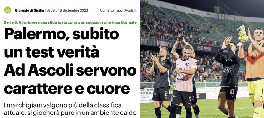 L’edizione odierna de “Il Giornale di Sicilia” si sofferma sul Palermo che oggi giocherà ad Ascoli.