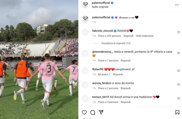 Dopo la vittoria odierna contro l’Ascoli, il Palermo sui social dedica la vittoria ai tifosi tramite un post con scritto: “Insieme a voi”