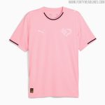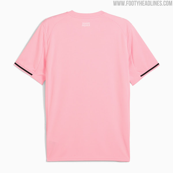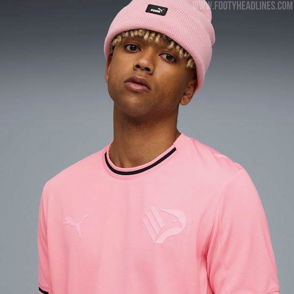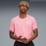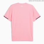 La maglia casalinga mantiene l’iconico colore rosa del club, con un design pulito e classico. Il colletto a girocollo moderno e le sottili finiture nere conferiscono un aspetto elegante. Lo stemma del Palermo è applicato in una finitura monocromatica, mentre il logo Puma è posizionato sul petto a destra in rosa pallido, completando il look sobrio e raffinato.