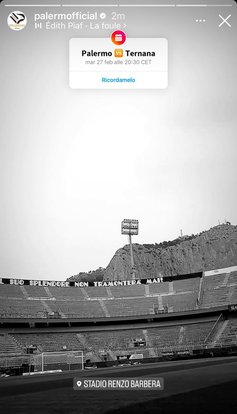 Il club, mediante una stories su Instagram, ha pubblicato alcuni scorci del Barbera vuoto prima dell’ennesima ondata rosanero che riempirà gli spalti. In alto la foto.