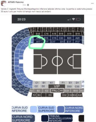 Sono andati quasi subito esauriti i biglietti per Palermo-Virtus Entella in programma sabato alle ore 21. Sul web, però, iniziano a spuntare i tagliandi per il match in rivendita ad un prezzo maggiorato, talvolta anche triplicato.