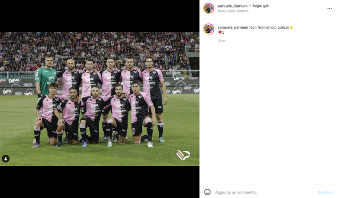 Palermo-Virtus Entella, Damiani sui social: “Non fermiamoci!” (FOTO)