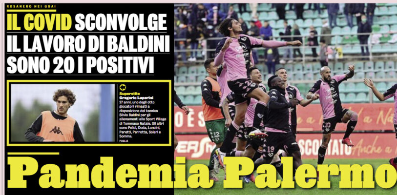 L’edizione odierna de “La Gazzetta dello Sport” si sofferma sul maxi cluster nel Palermo che sta sconvolgendo il lavoro di Silvio Baldini.