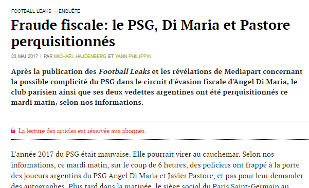 In mattinata la polizia francese ha eseguito una perquisizione in casa dell’ex rosanero Javier Pastore e del compagno di squadra Angel Di Maria; subito dopo è scattata la perquisizione anche nella sede del club. Le perquisizioni, scrive “Mediapart.fr”, sono state effettuate in merito all’operazione Football Leaks per irregolarità fiscale.