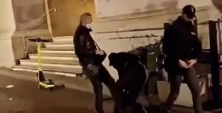 Il riferimento è ai video in cui si vedono due agenti in divisa fermare a terra un ragazzo nel corso della manifestazione di protesta contro i provvedimenti di restrizione adottati dal Governo.
