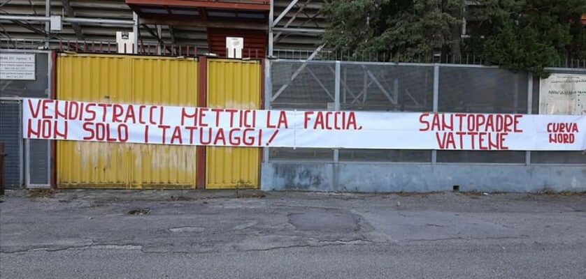 Stando a quanto riferito da “Calciogrifo.it”, anche martedì pomeriggio è stato esposto uno striscione a Pian di Massiano piuttosto eloquente nei confronti della società e del presidente Massimiliano Santopadre, ancora una volta invitato ad andarsene.
