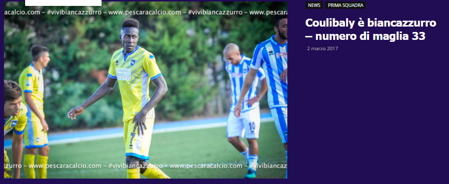 Il Pescara annuncia tramite il proprio sito ufficiale di aver tesserato Mamadaou Coulibaly. Di seguito il comunicato apparso sul sito ufficiale del degli abruzzesi: