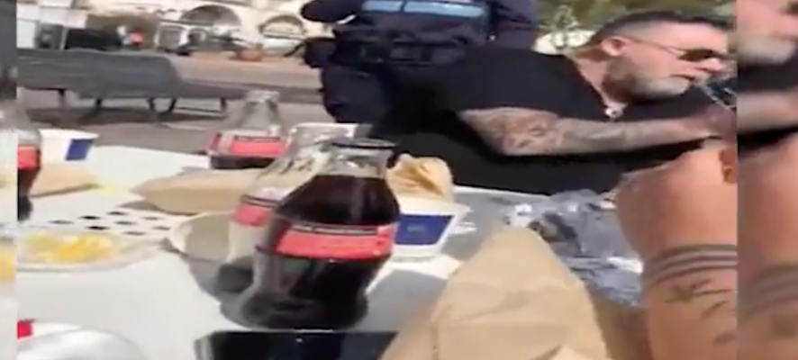 Pic-nic in zona rossa. Il sindaco arriva e spinge via i tavolini: «Le regole vanno rispettate» (VIDEO)