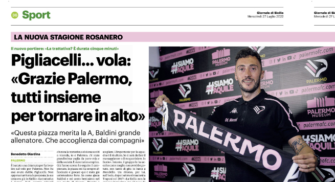 È bastata una chiamata per farlo salire sul volo per Palermo. Non ha mai avuto dubbi, Pigliacelli. Non appena è arrivata la proposta, la sua testa era già  in Sicilia: «La trattativa è durata…boh, quattro minuti? Cinque minuti?». Ecco, giusto il tempo di dire sì al progetti rosanero e di archiviare un quadriennio pieno di bei ricorsi in Romania: «Sono stato quattro anni, son stato benissimo a Craiova. Avremmo parlato a settembre del rinnovo ed ero pure d’accordo per vedere cosa sarebbe successo, poi tramite il mio agente ho ricevuto la chiamata del Palermo. Da lì è finito tutto».