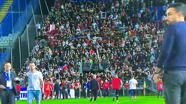 La gara tra Brescia e Cosenza è stata interrotta poco prima del fischio finale. Al gol segnato da Meroni è scoppiato un vero e proprio caos al Rigamonti con i tifosi del Brescia che hanno invaso il campo con fumogeni portando l’arbitro a sospendere la gara.