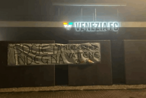 Ma i tifosi del Venezia non ci stanno. In segno di protesta, nella giornata di oggi sono comparsi tre striscioni presso la sede del club a Mestre, a Ca’ Venezia. Tra i messaggi, uno eloquente: “Il Doge non si tocca”, un riferimento simbolico a Pohjanpalo come figura centrale della squadra. Altri striscioni riportavano frasi altrettanto dirette, come “Giù le mani da Pohjanpalo” e, in toni più accesi, “Società indegna, Niederauer vattene”, rivolto al presidente del club, Duncan Niederauer.