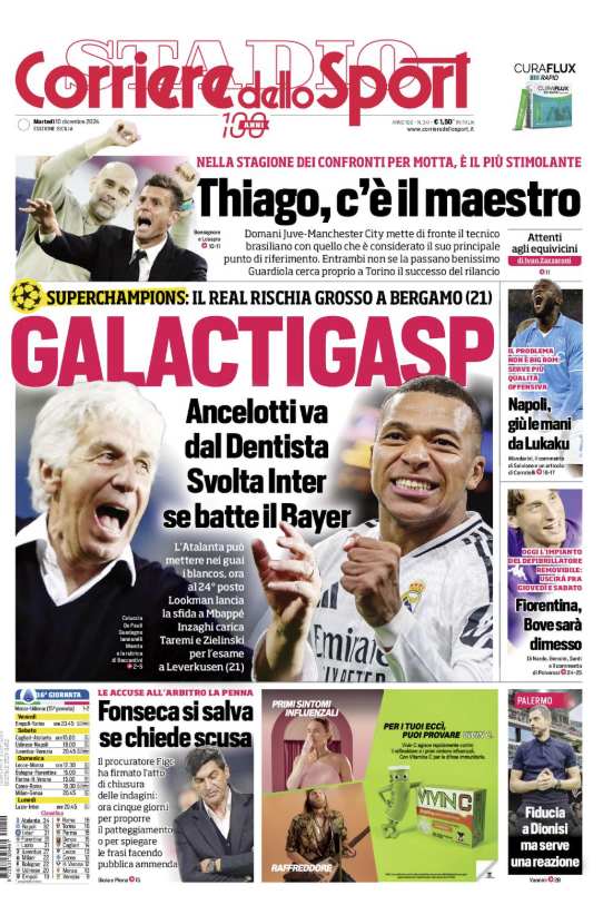 Prima pagina Corriere dello Sport: “Fiducia a Dionisi ma serve una reazione”