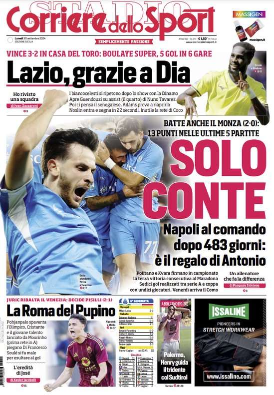 Prima pagina Corriere dello Sport: “Henry guida il tridente con il Sudtirol”