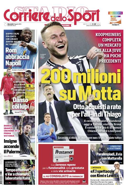 Prima pagina Corriere dello Sport: “Insigne accende il Palermo”