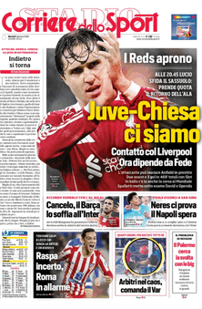 Prime pagine Prima pagina Corriere dello Sport: “Juve-Chiesa Ci siamo” Segui Ilovepalermocalcio su Google News Redazione Ilovepalermocalcio Gennaio 6, 2026 Torna in bianconero Continue Reading Previous Prima pagina Repubblica Palermo: “Sfida politica sullo Zen”Next Prima pagina Giornale di Sicilia: “Ospedali, giro di vite sulle visite a pagamento”