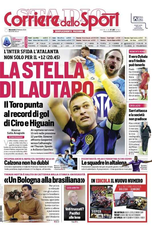 L’edizione odierna de “Il Corriere dello Sport” dedica la prima pagina a Lautaro e all’Inter.