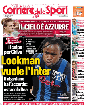 Prime pagine Prima pagina Corriere dello Sport: “Lookman vuole l’Inter” Segui Ilovepalermocalcio su Google News Redazione Ilovepalermocalcio Luglio 17, 2025 Grande colpo per Marotta? Continue Reading Previous Prima pagina Tuttosport: “Juve Sancho in arrivo”Next Prima pagina Corriere dello Sport: “Giugliano: «Italia da sogno»”