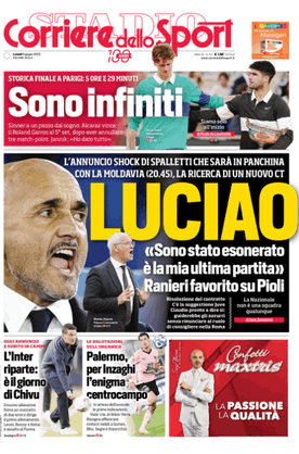 Prime pagine Prima pagina Corriere dello Sport: “Luciao” Segui Ilovepalermocalcio su Google News Redazione Ilovepalermocalcio Giugno 9, 2025 Italia, via Spalletti Continue Reading Previous Prima pagina Gazzetta dello Sport: “Basta”Next Prima pagina Tuttosport: “Allo sbando”