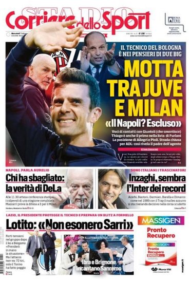 Prime pagine Prima pagina Corriere dello Sport: “Motta tra Juve e Milan” Segui Ilovepalermocalcio su Google News Redazione Ilovepalermocalcio Febbraio 7, 2024 L’edizione odierna de “Il Corriere dello Sport” dedica la prima pagina a Thiago Motta. Continue Reading Previous Prima pagina Gazzetta dello Sport: “Festival Ibra”Next Prima pagina Tuttosport: “Alcaraz nuovo Vidal”