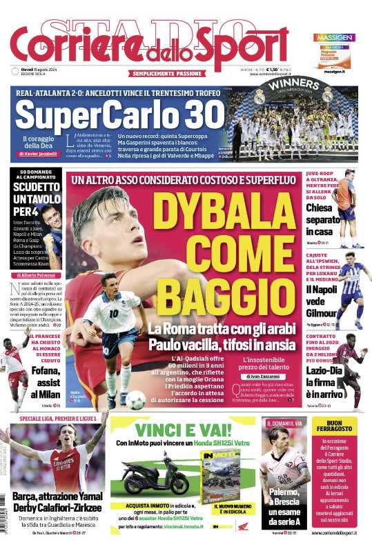 L’edizione odierna de “Il Corriere dello Sport” dedica un titolo in prima pagina al Palermo che domani affronterà il Brescia per la prima di campionato.