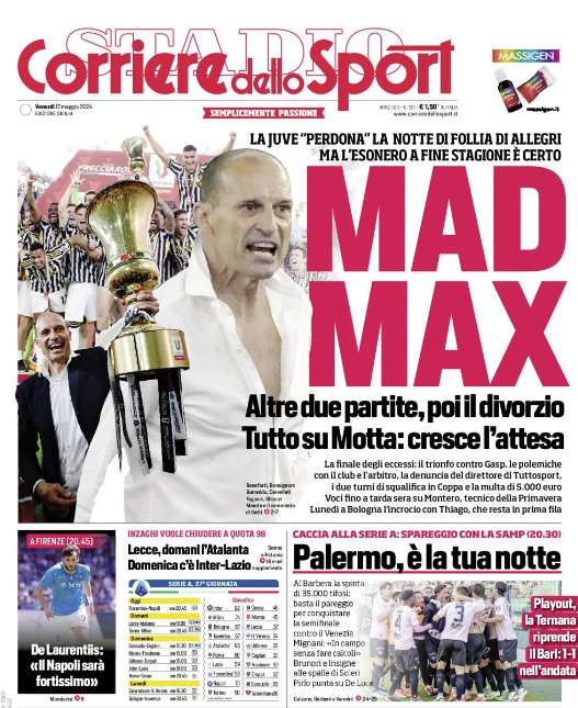 L’edizione odierna de “Il Corriere dello Sport” dedica un titolo in prima pagina al Palermo che oggi affronterà la Sampdoria per il primo turno playoff.