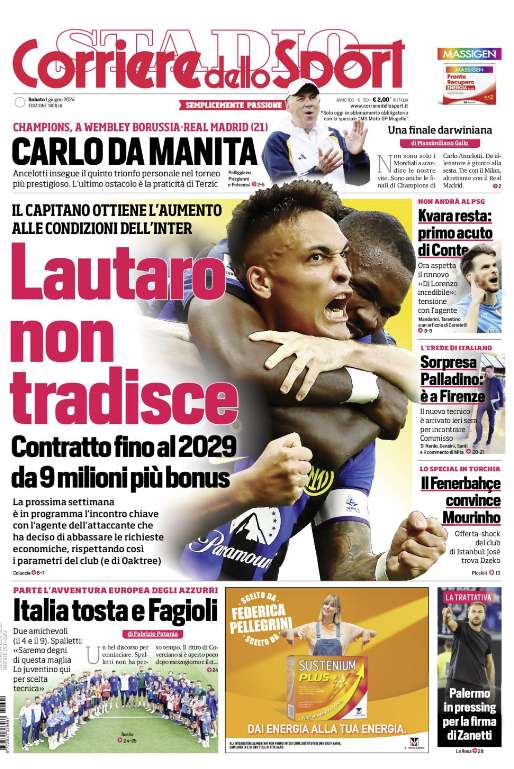L’edizione odierna de “Il Corriere dello Sport” dedica un titolo in prima pagina al Palermo in pressing per Zanetti.