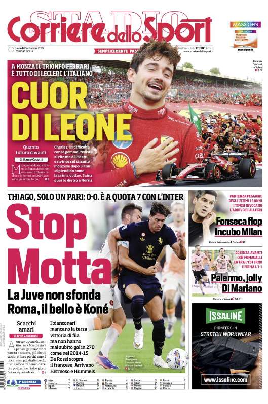L’edizione odierna de “Il Corriere dello Sport” dedica un titolo in prima pagina al Palermo che ha conquistato il pari contro il Cosenza grazie al gol di Di Mariano.