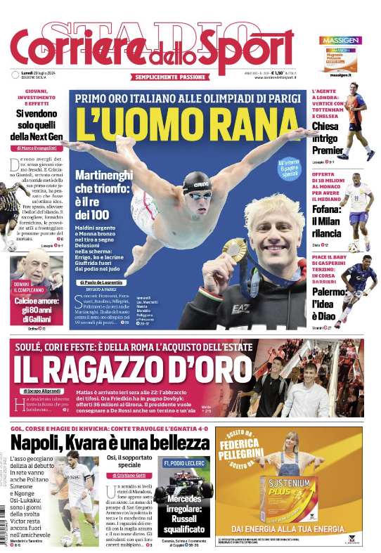 Prime pagine Prima pagina Corriere dello Sport: “Palermo, l’idea è Diao” Segui Ilovepalermocalcio su Google News Redazione Ilovepalermocalcio Luglio 29, 2024 L’edizione odierna de Il Corriere dello Sport dedica un titolo in prima pagina al mercato del Palermo. Continue Reading Previous Prima pagina Giornale di Sicilia: “Il primo oro arriva dal nuoto. Martinenghi vince i 100 rana”Next Prima pagina Gazzetta dello Sport: “Oro da re”