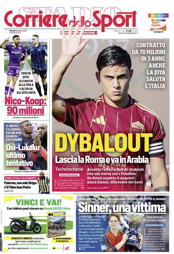 L’edizione odierna de Il Corriere dello Sport dedica un titolo in prima pagina al mercato del Palermo
