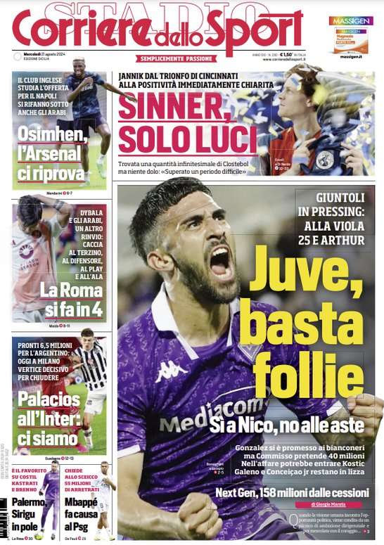 L’edizione odierna de Il Corriere dello Sport dedica un titolo in prima pagina al mercato del Palermo.