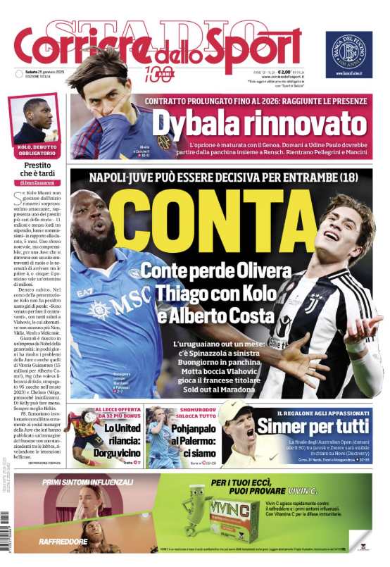 Prima pagina Corriere dello Sport: “Pohjanpalo al Palermo, ci siamo”