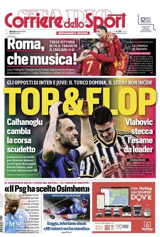 Prime pagine Prima pagina Corriere dello Sport: “Roma, che musica!” Segui Ilovepalermocalcio su Google News Redazione Ilovepalermocalcio Febbraio 6, 2024 L’edizione odierna de “Il Corriere dello Sport” dedica la prima pagina alla Roma. Continue Reading Previous Prima pagina Giornale di Sicilia: “Vigili pestati alla Vucciria, arrestato figlio del boss”Next Prima pagina Gazzetta dello Sport: “L’uomo dal lancio d’oro”