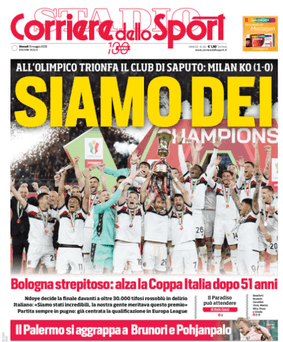 Prime pagine Prima pagina Corriere dello Sport: “Siamo Dei” Segui Ilovepalermocalcio su Google News Redazione Ilovepalermocalcio Maggio 15, 2025 Grande vittoria per il Bologna Continue Reading Previous Prima pagina Gazzetta dello Sport: “Bologna in paradiso”Next Prima pagina Repubblica Palermo: “Città violente”