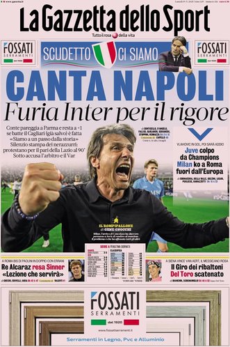 Prime pagine Prima pagina Gazzetta dello Sport: “Canta Napoli” Segui Ilovepalermocalcio su Google News Redazione Ilovepalermocalcio Maggio 19, 2025 Furia Inter Continue Reading Previous Prima pagina Tuttosport: “Qui si fa la storia”Next Prima pagina Corriere dello Sport: “L’ultimo passo”