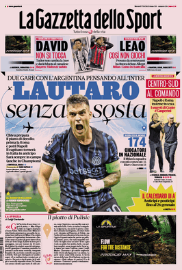 Prime pagine Prima pagina Gazzetta dello Sport: “Centro-Sud al comando” Segui Ilovepalermocalcio su Google News Redazione Ilovepalermocalcio Ottobre 7, 2025 Napoli e Roma protagoniste in serie A Continue Reading Previous Prima pagina Tuttosport: “«Musetti da Finals»”Next Prima pagina Giornale di Sicilia: “A Sharm si tratta, a Gaza si muore”