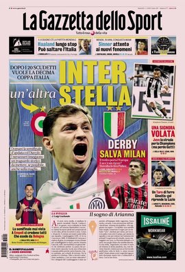 Prime pagine Prima pagina Gazzetta dello Sport: “Inter Stella” Segui Ilovepalermocalcio su Google News Redazione Ilovepalermocalcio Aprile 1, 2025 L’edizione odierna de La Gazzetta dello Sport dedica un titolo in prima pagina all’Inter. Continue Reading Previous Prima pagina Corriere dello Sport: “Il Palermo si rilancia, archiviata la crisi”Next Prima pagina Tuttosport: “Conte agita tutti”
